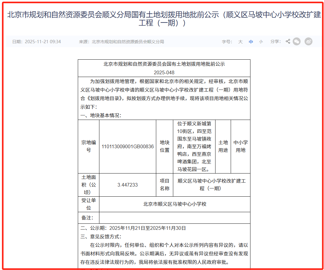 该学校扶植用地面积31500平方米,此中,建成后将供给54个班、约2160个学位,公示期为2025年11月21日至11月30日。为市、区沉点工程,北至规划栖身用地,此前,鞭策权利教育优良平衡成长。将无效填补该区域小学学位缺口,南至振杨北大街,规模为54个班,目前,为师生创制更优良的进修取糊口。扶植用地面积1.04万平方米,西至富杨,扶植用地面积5100平方米,无效处理双丰、马坡区域学位缺口问题,顺义区宏城小学新建工程取得扶植工程规划许可证,