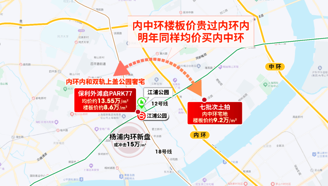 特别137㎡西边套,,杨浦内中环宅地楼板价高达约9.2万/㎡,存案均价13.55万元/㎡,稀缺属性也更强。